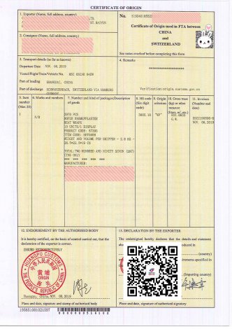 瑞士自贸区原产地证
