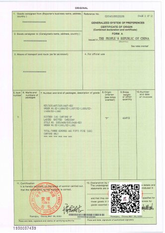 海关局签发|原产地证